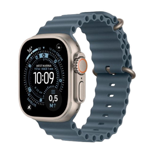 Impulsado por el nuevo y eficiente chip S11 SiP, el Ultra 3 ofrece una potencia inigualable y una autonomía de batería mejorada, alcanzando hasta 72 horas en modo de bajo consumo, ideal para expediciones de varios días. Cuenta con GPS de doble frecuencia de máxima precisión para el mapeo más exacto, una brújula rediseñada y funcionalidades de buceo avanzado. La correa Océano en color Azul Náutico está especialmente diseñada para deportes acuáticos, fabricada con un elastómero de alto rendimiento y un cierre de hebilla de titanio que garantiza un ajuste seguro incluso con trajes de neopreno. El Apple Watch Ultra 3 es mucho más que un reloj: es la tecnología esencial para ir más allá de los límites.