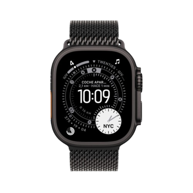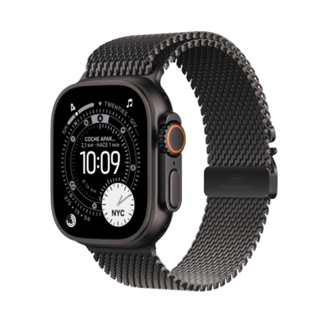 Impulsado por el nuevo y eficiente chip S11 SiP, el Ultra 3 ofrece una velocidad sin precedentes, una funcionalidad celular avanzada (modelo a confirmar) y una autonomía de batería líder en su clase. Incluye GPS de doble frecuencia de máxima precisión y sensores avanzados para un seguimiento de salud y seguridad sin igual. A diferencia de las correas deportivas, la Correa Milanesa en color Negro (Talla L) añade un toque de elegancia atemporal. Fabricada en malla de acero inoxidable, esta correa se ajusta magnéticamente a la muñeca, ofreciendo un look profesional y seguro, perfecto para el uso diario sin sacrificar las capacidades de aventura del Ultra 3.