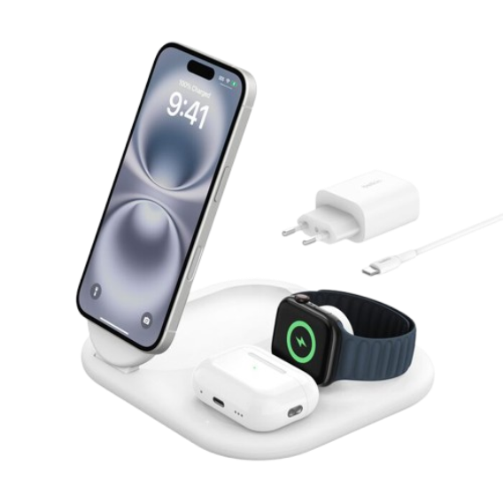 Belkin Booscharge 3 In 1 15W Wireless Magsafe Foldable White Charger
